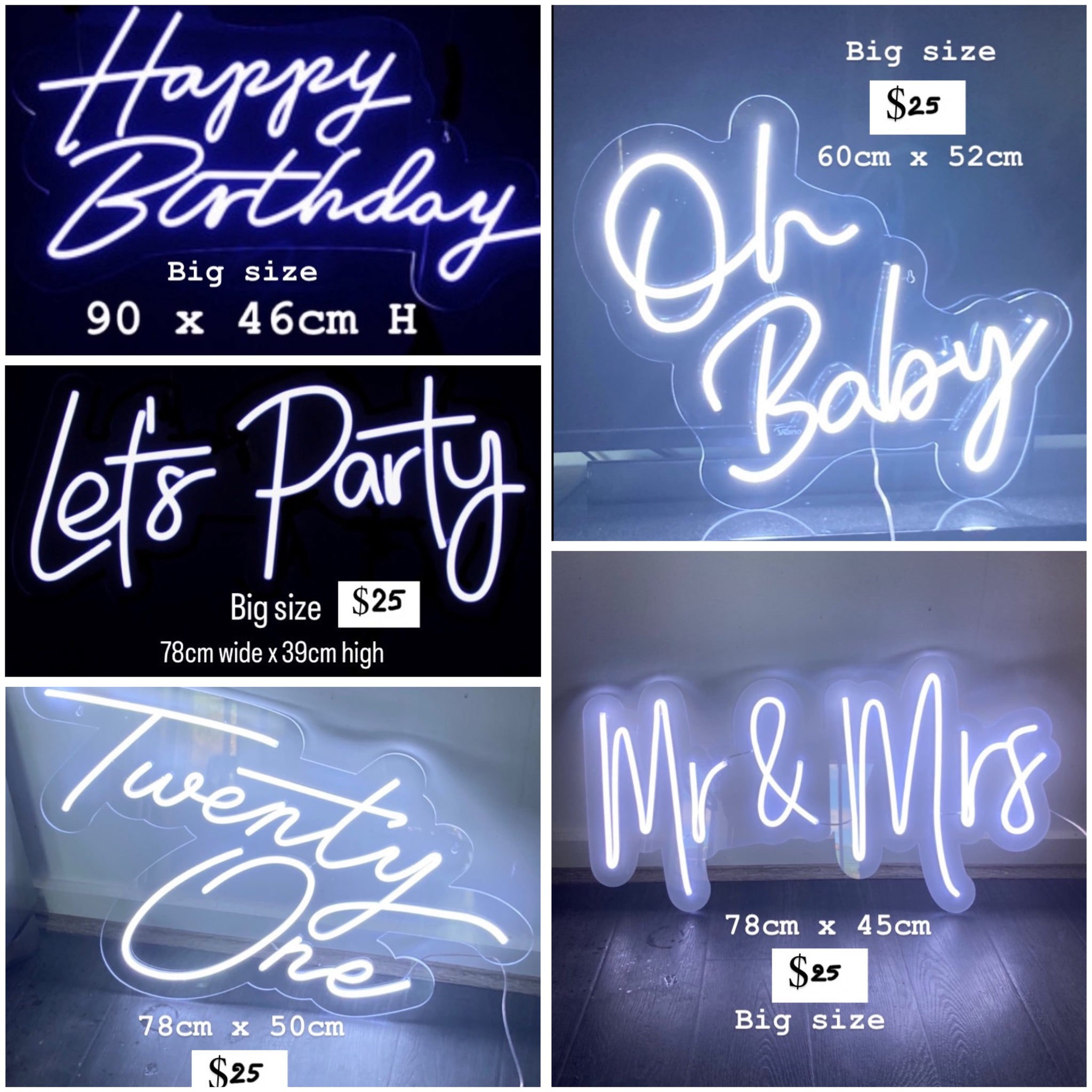 Neon led sign large size includes charger $25 hire each (plus $50 refundable bond)